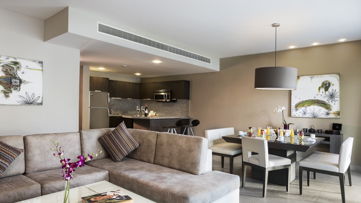 EPIC Collection immerses you in the ancient culture of Mexico with a fusion of contemporary style. Have breakfast every morning on a furnished terrace or refresh yourself by the pool, just steps from your bed. This residence features one bedroom with a King-size bed, a spacious bathroom with bathtub and rain shower, a fully equipped kitchen, a living room, dining room, and a comfortable double size sofabed.